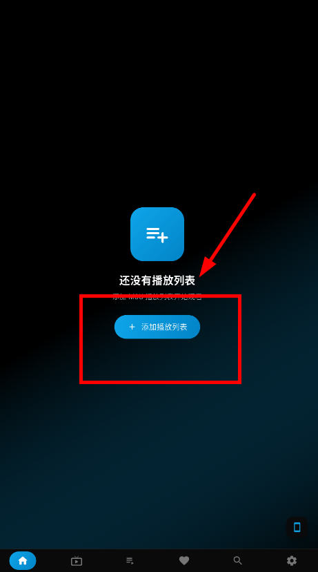 2┃、在首页点击添加播放列表;