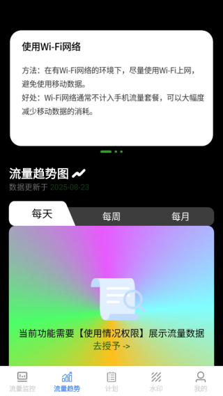 ¶¯Ì¬Á÷Á¿ÒDZíÅÌ£ºÒÔͼ±íÐÎʽʵʱչʾÁ÷Á¿Ê¹ÓÃËÙ¶È¡þ¡¢Ê£ÓàÁ¿¼°Ô¤¼Æ¿ÉÓÃʱ¼ä¡þ£¬Ö§³Ö°´ÈÕ/ÔÂÇл»ÊÓͼ¡£