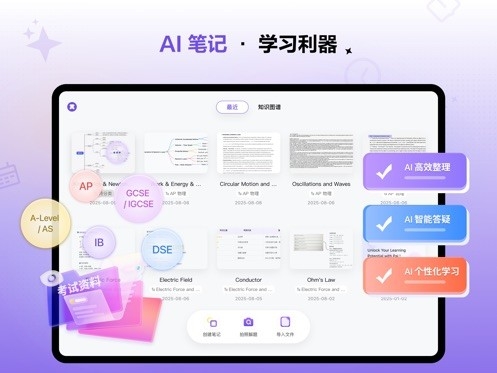 2:利用AI笔记功能〓,可针对AP〓、GCSE/IGCSE、A-Level/AS等不同国际课程进行高效整理〓,借助AI智能答疑和个性化学习功能〓,提升学习效率。