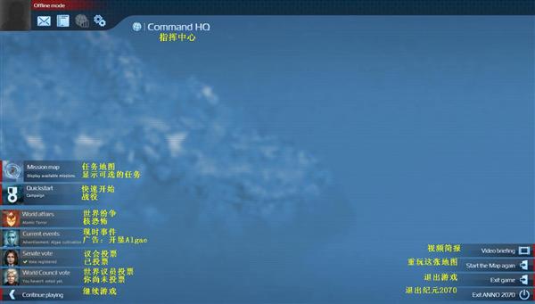 纪元2070游戏菜单选项中文翻译以下是即时战略游戏《纪元2070》游戏菜单选项翻译。
